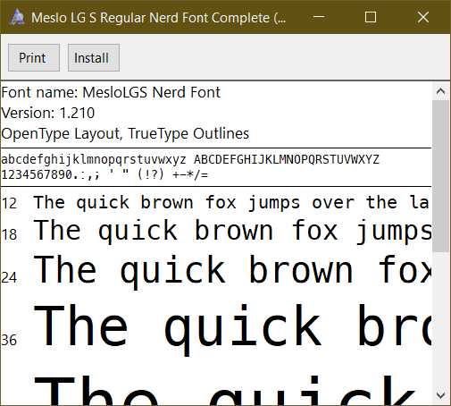 下载完成之后,我随便找一个,实在太多了,不知道怎么选择,也可以根据字体项目的文档,全部安装下来去挑,不过个人感觉看不出太多变化,我选择了下面这个进行安装:MesloLGS Nerd Font(Meslo LG S Regular Nerd Font Complete.ttf)