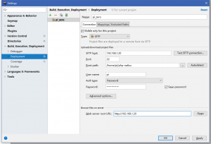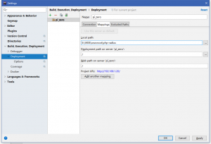 然后下方的 path mappings,也需要设置(我这里默认设置好了),对本地与远程的目录进行映射